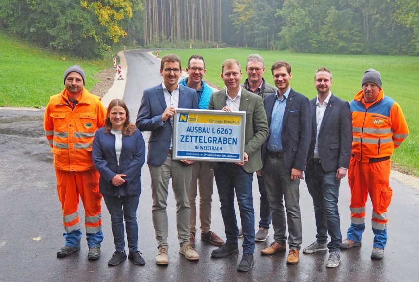 Die Landesstraße L 6260 im Bereich Zettelgraben (KG Schwaig) im Gemeindegebiet von Weistrach wurde zur Erhöhung der Verkehrssicherheit umfassend erneuert und ausgebaut. Auf einer Länge von rund 970 Metern wurde die Fahrbahn modernisiert, die Entwässerung verbessert und zusätzliche Sicherheitsmaßnahmen umgesetzt.