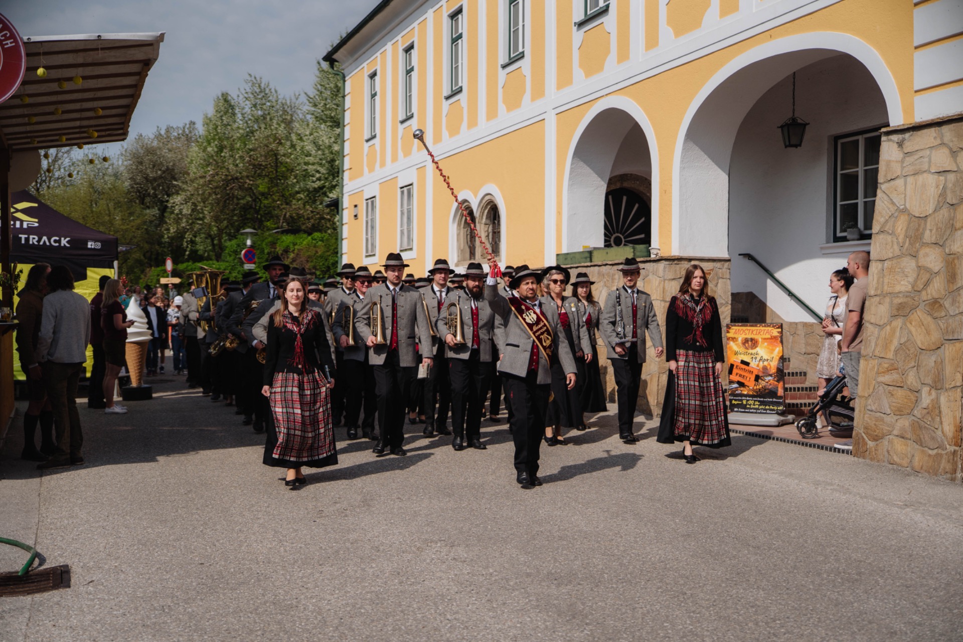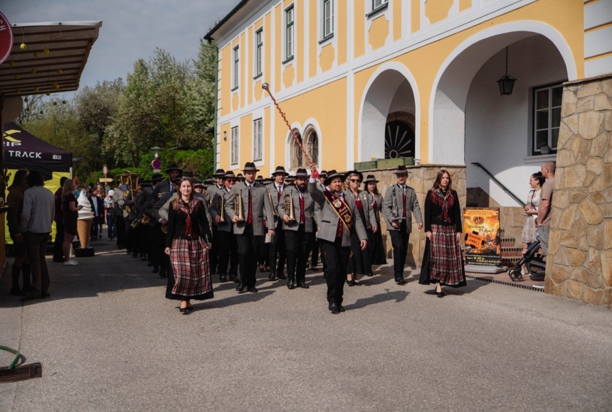 Ein echtes Herzstück des Tages war das durchgehend gestaltete Bühnenprogramm, das sich heuer erstmals über den gesamten Veranstaltungstag erstreckte. Die feierliche Eröffnung erfolgte traditionell mit dem Einzug des Musikvereins Weistrach, begleitet von Bürgermeister Thomas Hirsch, zahlreichen Ehrengästen, der Volksschule Weistrach sowie dem beliebten Moststraßenmaskottchen „Bartl – die Birne“. Am Dorfplatz angekommen sorgten die Schülerinnen und Schüler der dritten und vierten Klassen mit einem schwungvollen Flashmob für einen emotionalen Auftakt und begeisterten das Publikum.