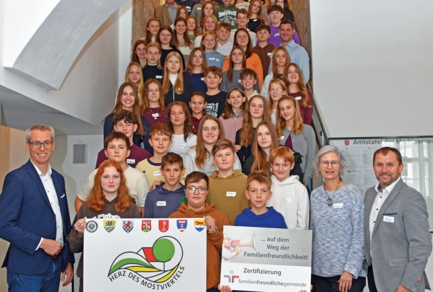 Die Kleinregion „Herz des Mostviertels“ mit ihren sieben Mitgliedsgemeinden bewirbt sich nicht nur um das Qualitätssiegel familienfreundliche Gemeinde, sondern zusätzlich um das UNICEF-Zusatzzertifikat kinderfreundliche Gemeinde. Zentrale Voraussetzung dafür ist echte Jugendbeteiligung – und genau die stand im Mittelpunkt einer Jugendkonferenz, zu der aus allen dritten und vierten Klassen der sechs Mittelschulen der Region sowie vom Stiftsgymnasium Seitenstetten insgesamt 50 Schülerinnen und Schüler entsandt wurden.