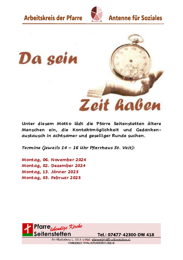Der Arbeitskreis der Pfarre "Antenne für Soziales" lädt ältere Menschen ein.