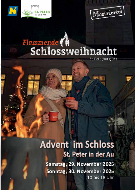 Wenn das Renaissanceschloss St. Peter in der Au im Lichterglanz erstrahlt, dann ist es wieder Zeit für die Flammende Schlossweihnacht – ein Adventmarkt, der Herz und Sinne gleichermaßen verzaubert. Am 29. und 30. November lädt das Kulturreferat der Marktgemeinde St. Peter in der Au herzlich zu einem stimmungsvollen Start in die Adventzeit ein.