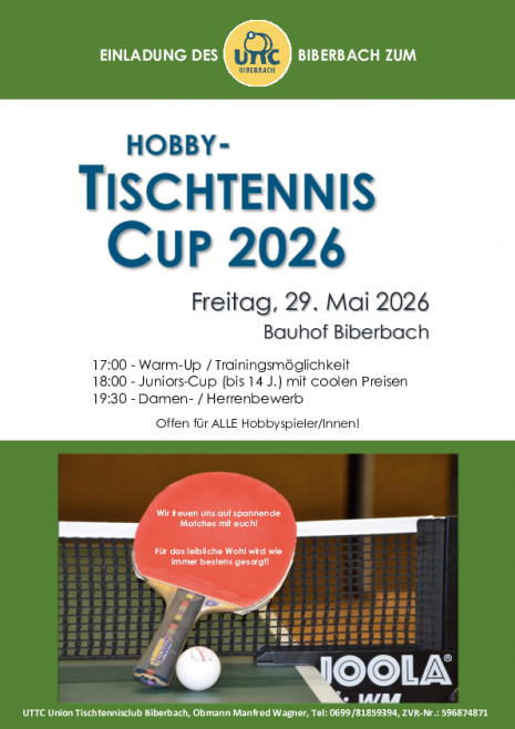 Hobby-Tischtennis-Cup 2026 - UTTC Biberbach