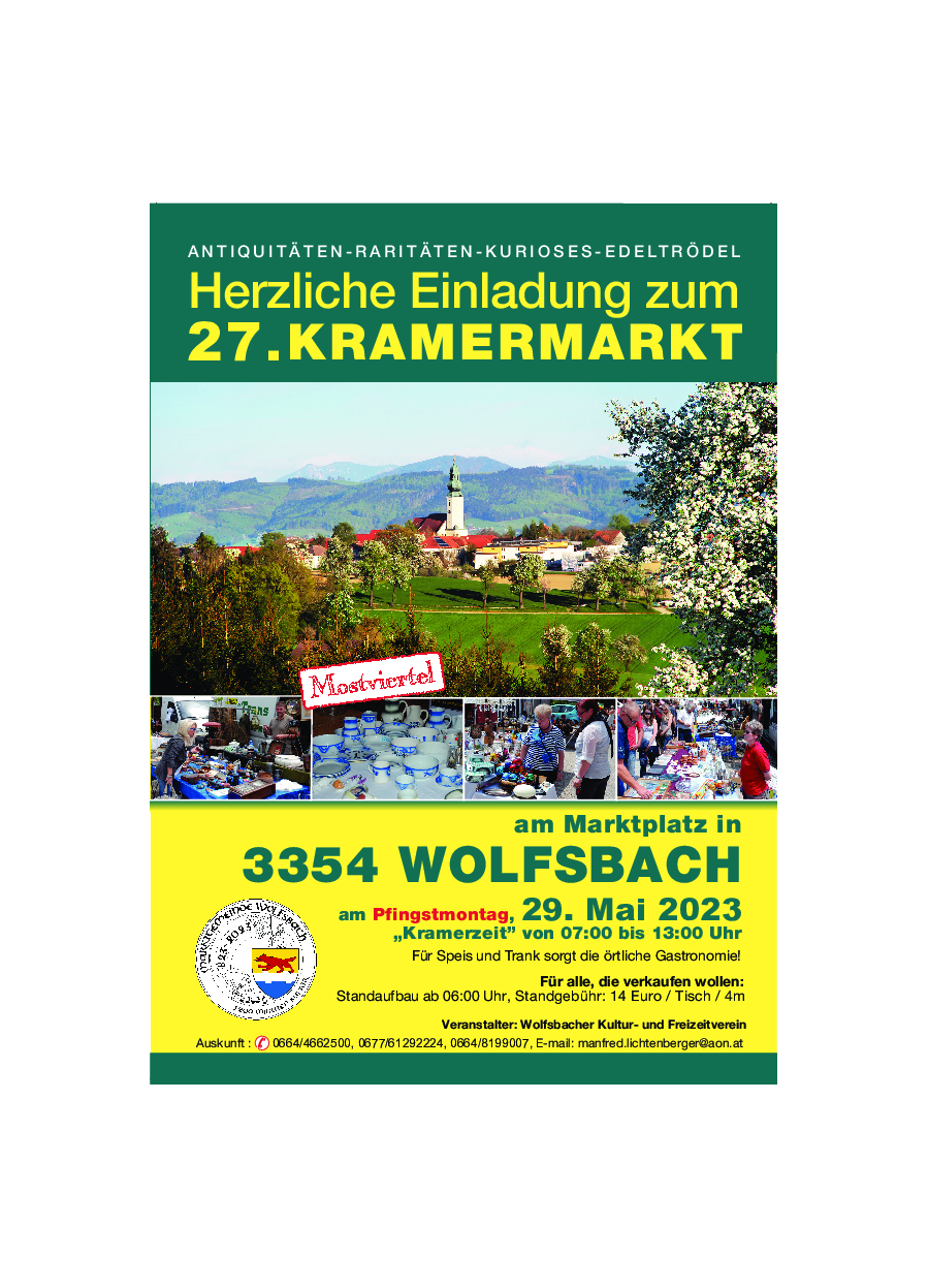 Wolfsbach: Montag, 29. Mai 2023 07:00 Uhr bis 13:00 Uhr