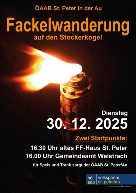 Der ÖAAB St. Peter/Au lädt zur traditionellen Fackelwanderung auf den Stockerkogel.