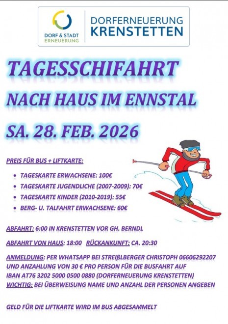 Tagesschifahrt nach Haus im Ennstal - Dorferneuerung Krenstetten