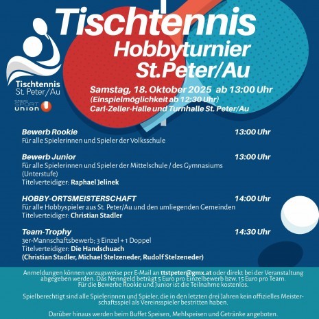 Tischtennis Hobbyturnier - Union St. Peter/Au - Sektion Tischtennis
