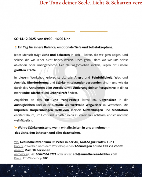 Workshop: Der Tanz deiner Seele. Licht & Schatten vereinen - Anna Theresa Bichler